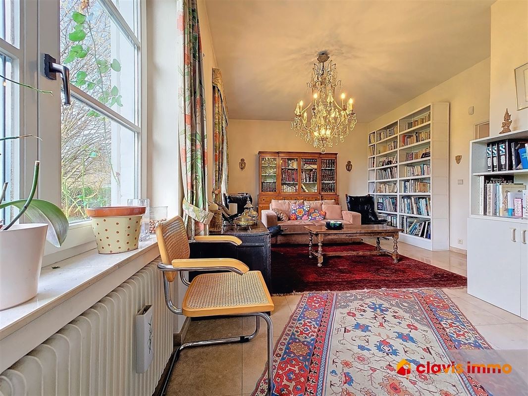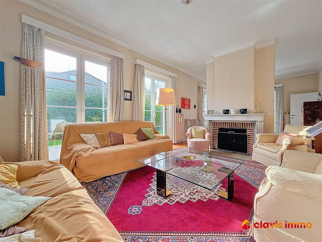 - Het gelijkvloers omvat ook twee woonkamers, waarvan één met een open haard en grote ramen, die een mooi uitzicht op de tuin bieden,